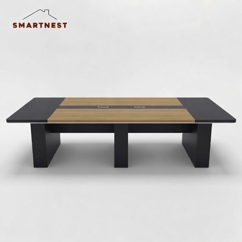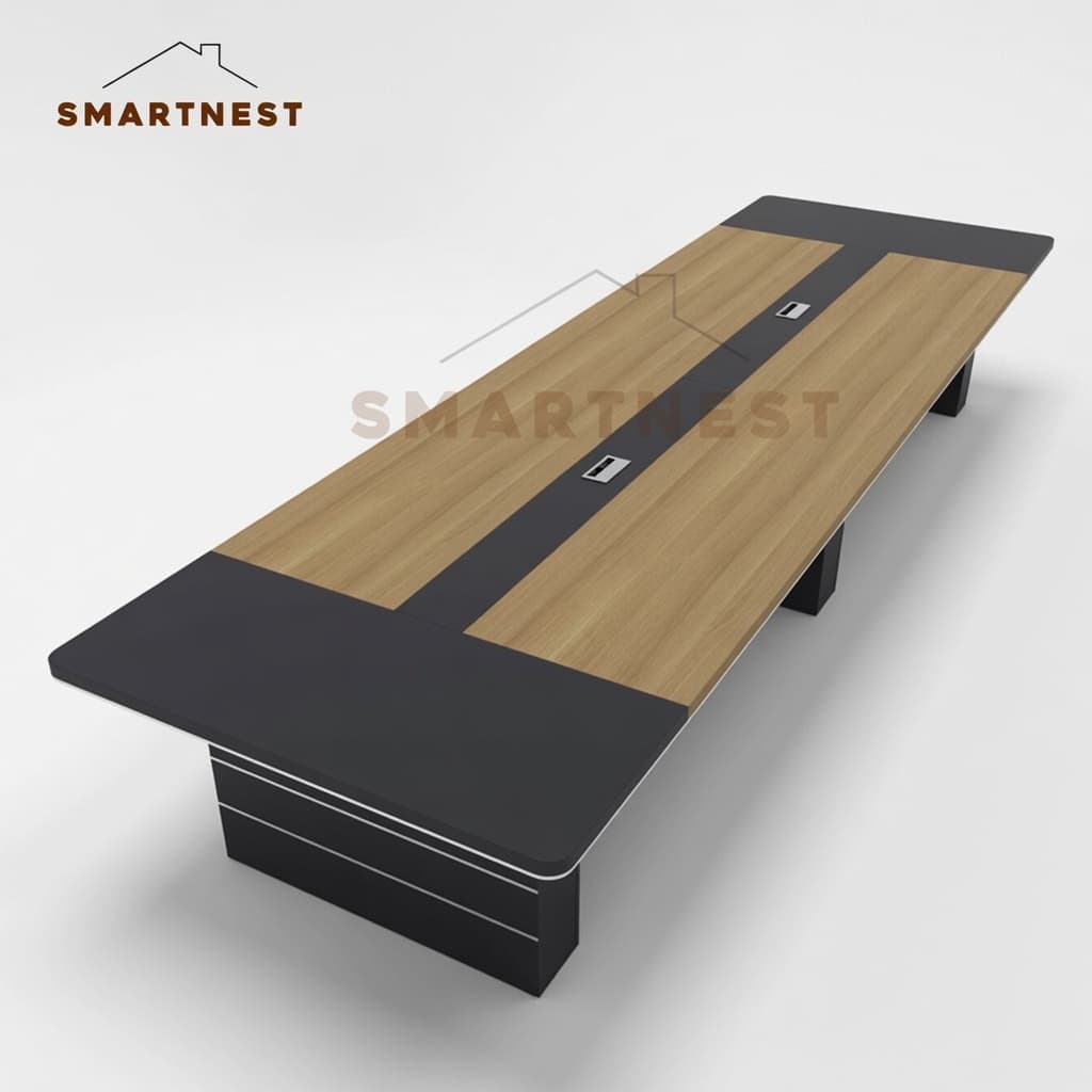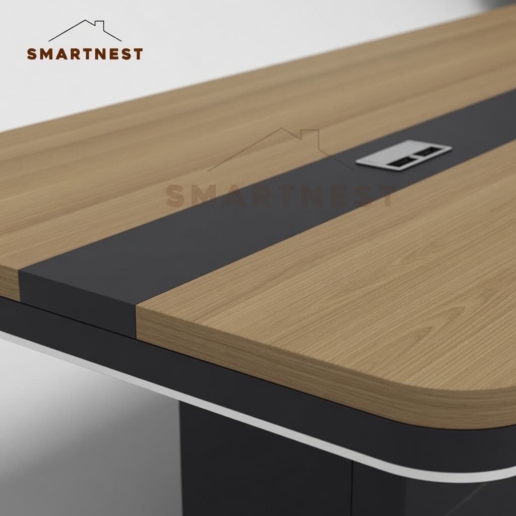 Bàn họp SMARTNEST thiết kế hiện đại, mặt gỗ kết hợp khung đen sang trọng, tích hợp khe đi dây tiện lợi, phù hợp phòng họp doanh nghiệp.